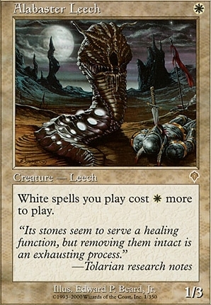 And here we have it, a crappy creature that, for the measly price of one mana, will make the game much harder for its owner — and its owner alone. Alabaster Leech would only ever more or less make sense in a deck where it’s the only White spell, but it just isn’t worth it simply for the extra 2 points in defense that it has over the regular 1 mana cost creature. For maximum effect, try to have four in play at the same time. The fourth one will be costing you 4 mana and bring no upsides whatsoever!