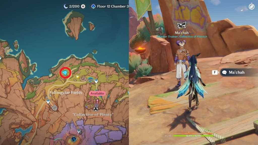 You must first complete the Is “Intensity” Really the Key? quest to unlock Ma’chah’s Warrior’s Challenge. You can find him in the hot spring southwest of Fallingstar Fields to start the quest. Once that is done, teleport to the waypoint in the north Collective of Plenty and head northwest to find Ma’chah in the tribe’s training ground. Interact with him to start the challenge.