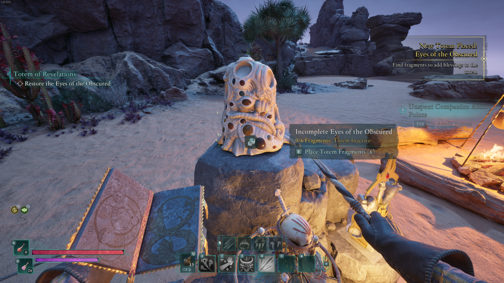 Now that you have all seven Totem of Revelations pieces, head to any party camp and visit the totem rock on the edge of the camp. Place the Eyes of the Obscured Totem Base down on the top left rock and then follow up with the six fragments.