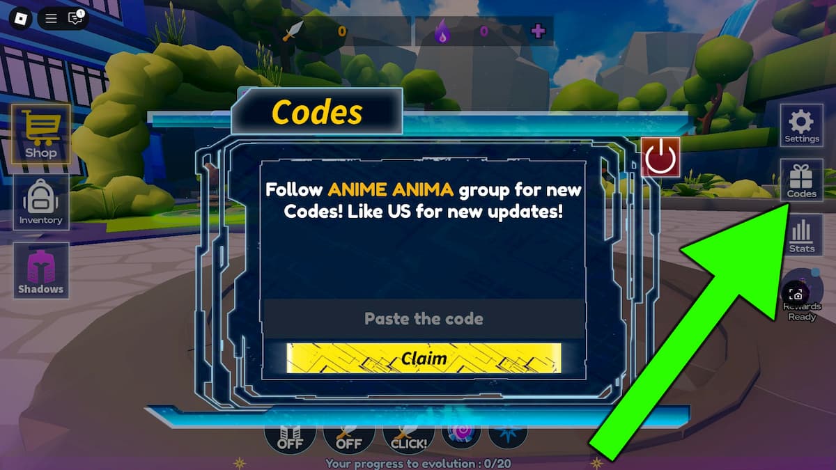 How to redeem codes in Anime Evolution