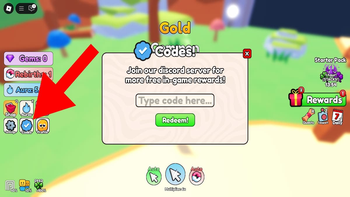 If you’re new to this game, then you’ll need to complete a short tutorial to unlock the Aura Farm Simulator code redemption system. Once you do that, take a look at the guide below to learn how to use codes: