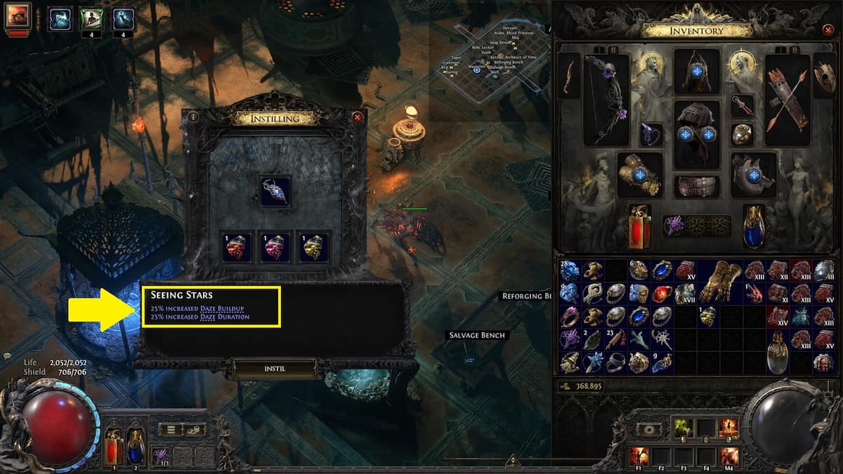 Lastly, the modifiers listed are the effects that will be added to a Waystone if you decide to Instill a combination of Distilled Emotions to one, instead of an Amulet. This results in a much more enhanced Waystone, which can result in better loot if you’re lucky.