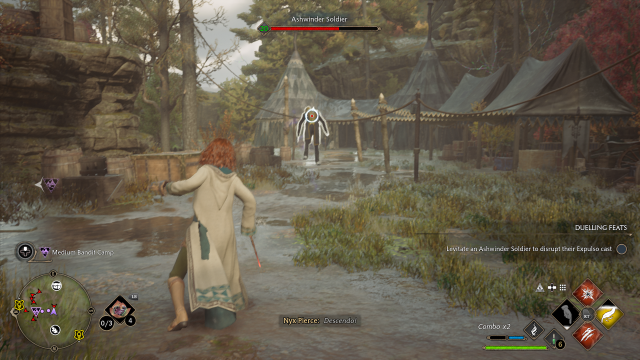 There’s a reason you have to learn this combo early in the game. It’s incredibly useful, and it often produces Ancient Magic for you to gather up during the fight. Use Levioso to hold an opponent still, and then hit them with Basic Cast two or three times to deal damage. Then, you want to cast Accio before the opponent hits the ground, pulling them back to you for a few more rounds of Basic Cast. Finally, you hit them with a big damage spell. Confringo, Bombarda, and Diffindo are all powerful and can hit an enemy that is further away than Incendio can.