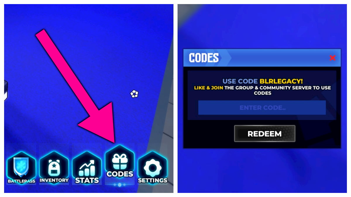 How to redeem codes in BLR: Legacy