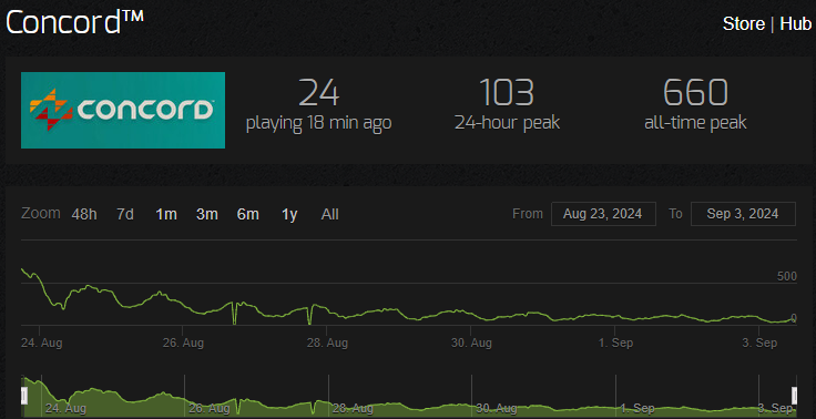 Is it really that difficult to understand why Concord is receiving the fate that it is, though? As a PlayStation 5-first title, the console probably has more players than the PC version. However, taking a look at the Steam player count Charts can still give us somewhat of a picture of player numbers, and, well, it’s not good. After launching at peak of 660 players, Concord has essentially yo-yo’d between about 50-150 players concurrently on Steam each day.