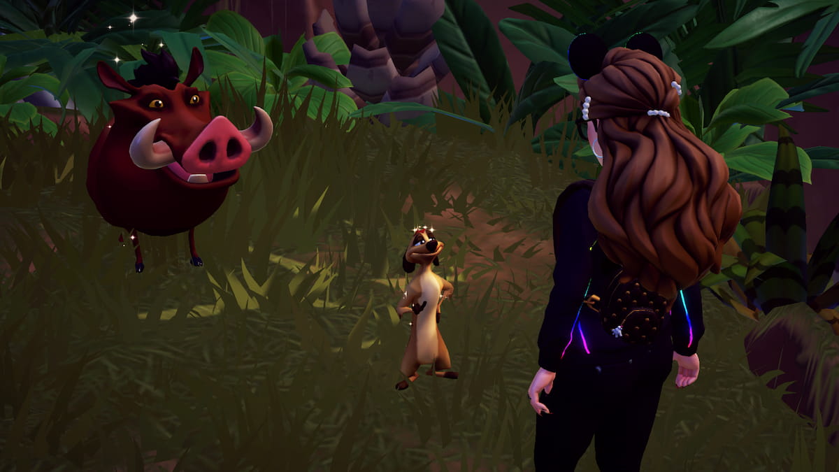 Unlike most quests in Disney Dreamlight Valley that start automatically, you’ll need to find Simba and speak to him to begin Finding Old Friends. He’ll tell you about his pals Pumbaa and Timon, currently residing in the Lion King Realm. It’s time to return to the forest.