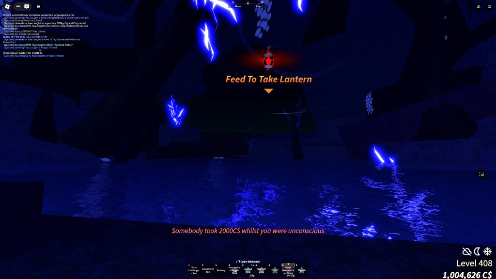 The biggest new addition in this update is Animal Pools (Animal Hunt). These are, essentially, like raid battles in Fisch. When an Animal Pool spawns, an Animal Fish will appear somewhere in the sea with a protective bubble around it. Players need to fish around or inside this bubble in order to lower its HP to zero. You lower the bubble’s HP by catching a fish. As you can see, the more players fish at the same time, the faster the protective bubble will disappear.