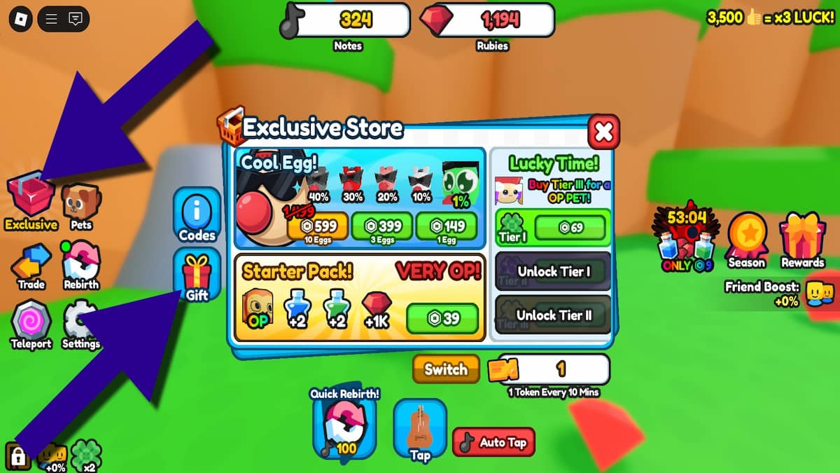 Guitar Simulator is a Roblox clicker where you get to become a skilled musician. Playing the guitar is easier than ever, since you only need to keep clicking to gain notes. You can use them to buy better gear and hatch adorable pets. Collect Rubies around the map, craft potions to boost your note production, and rebirth once you’re ready to start your journey from scratch.