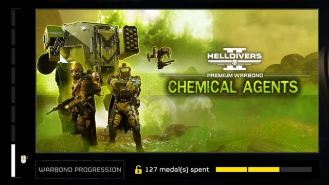 After the previous Warbond’s (literally) inflammatory offerings, it’s time for something almost entirely different: chemical warfare. The aptly titled Chemical Agents Premium Warbond is packed to the gills with appropriately toxic armaments. Its unique gimmick, though, is that it’s not mainly focused on new weapons. Instead, the crux of the Warbond lies in its two exclusive Stratagems: the Dog Breath Guard Dog and the Sterilizer chemical thrower. These two cover your foes in noxious fumes that confuse them and ravage their armor, adding to the utility of the purchase. Here’s everything included in the Chemical Agents Warbond: