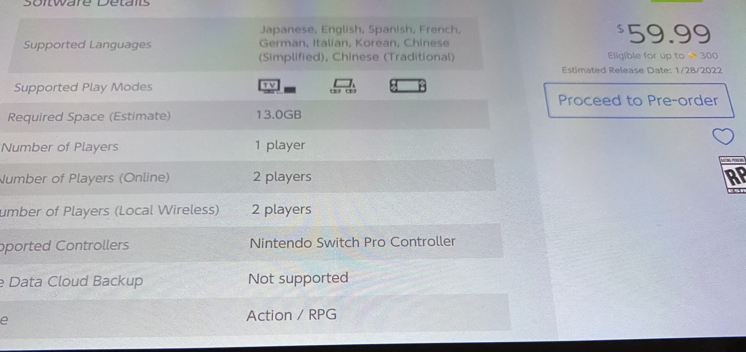 First up is Pokemon Diamond/Pearl. As you can see the MSRP for each is $59.99, with the individual games clocking in at 10GB in terms of file sizes. There’s also a bundle available for $119.99 for both games, which is neatly listed as “20GB.”