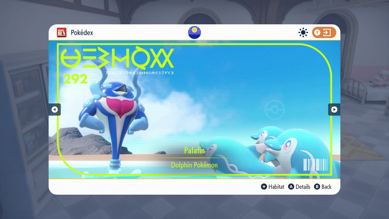 Note that Palafin also has a “hero form,” which bulks it up quite a bit. You can only use this in battles with the ability “Zero to Hero,” which enacts after you swap it out while it’s still alive. Hero form still counts as the same Pokedex entry and cannot be used out of battle, but it’s something to keep in mind!