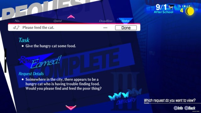 Elizabeth, the Velvet Room assistant in Persona 3 Reload, yearns to know all about the human world. In one such attempt, she asks you to feed a stray cat. She doesn’t say much about it, but we’ve got you covered. Here’s what you need to do for Request #42.
