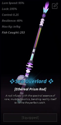 ![]() Since the Sea Leviathan has -90% Progress Speed when being reeled in, we recommend using the Ethereal Prism Rod. It has an extremely high Luck stat of 195%, and you will definitely need that if you want to catch this behemoth effectively. It also has 40% Resilience, which will come in handy as the Sea Leviathan can be quite frantic and move the progress bar all over the place. | ![]() The Sea Leviathan has a very specific taste when it comes to baits: Shark Head. This is the preferred bait when catching this monster of a fish, as all other baits seem to be too small for the Sea Leviathan to pay attention. It has a very high Universal Luck stat of 30 and a good Resilience of 10, making it very effective when reeling it in. Sadly, it has a Lure Speed of -5, so it might take a few more clicks than usual, but that does not matter as the pros heavily outweigh this one con. You can easily get Shark Heads from the Quality Bait Crate, but if you do not have them, you can also use Seaweed or Weird Algae. |