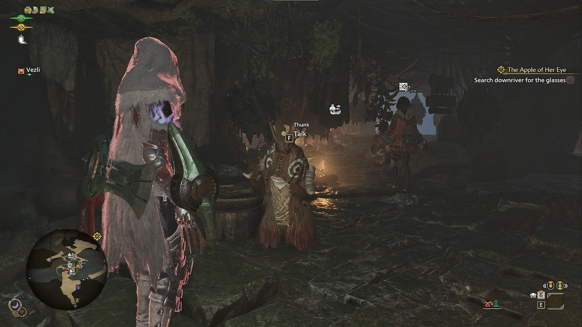 Unlike most quests in Monster Hunter Wilds, you do not need to hunt any monsters to complete The Apple of Her Eye. Instead, you’re tasked with tracking down the thief who stole Alma’s glasses. There’s no combat involved, just a bit of exploration.