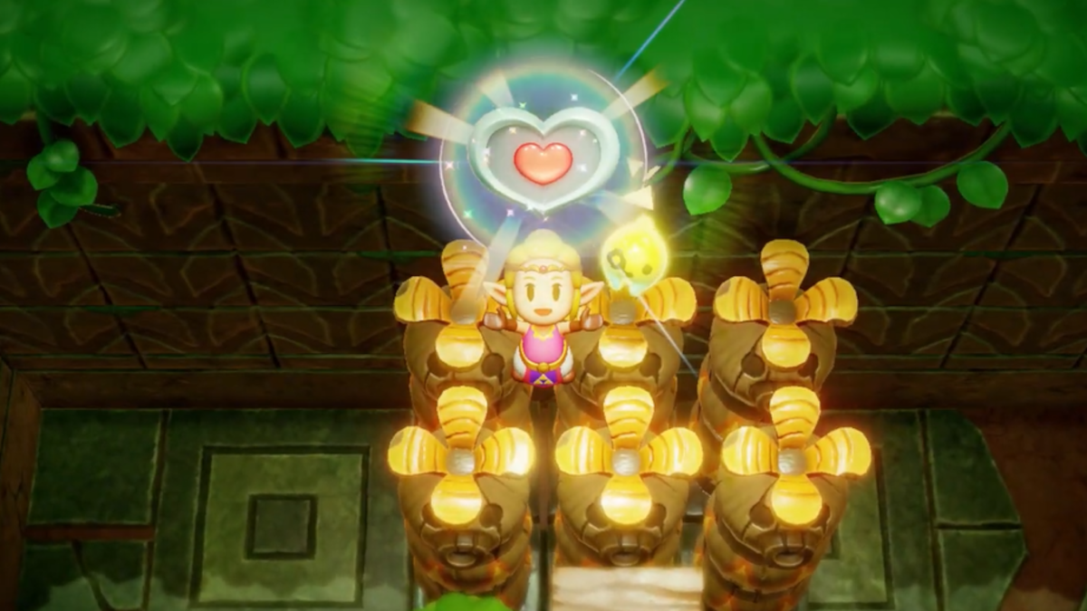 Inside, you’ll find the Heart Piece on top of six totems which cannot be moved using the Bind ability. To access it, you’ll need to use all of the items already in the room to create a makeshift staircase.