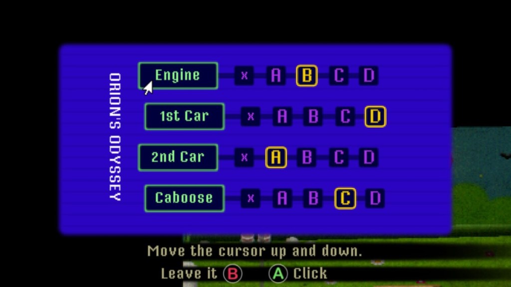 Once inside, access the terminal at the back left of the room by using your Data Disk. You’ll be met with a screen that asks you to assign a letter to each of a train’s cars. The train on display in the room is your rubric, while the two plaques and buttons will give you clues as to which letter to assign to each car.
