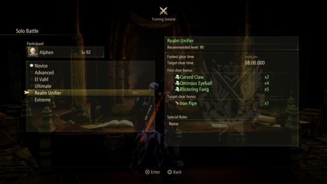 Make sure you’re good on health and AP, as enemies aren’t going to be easy on you. If you manage to beat the challenge under the time limit, you’ll receive the Iron Pipe alongside four Ominous Eyeballs, two Cursed Claws, and two Blistering Fangs. Go to a vendor after and you’ll be able to craft the Realm Unifier for Alphen.