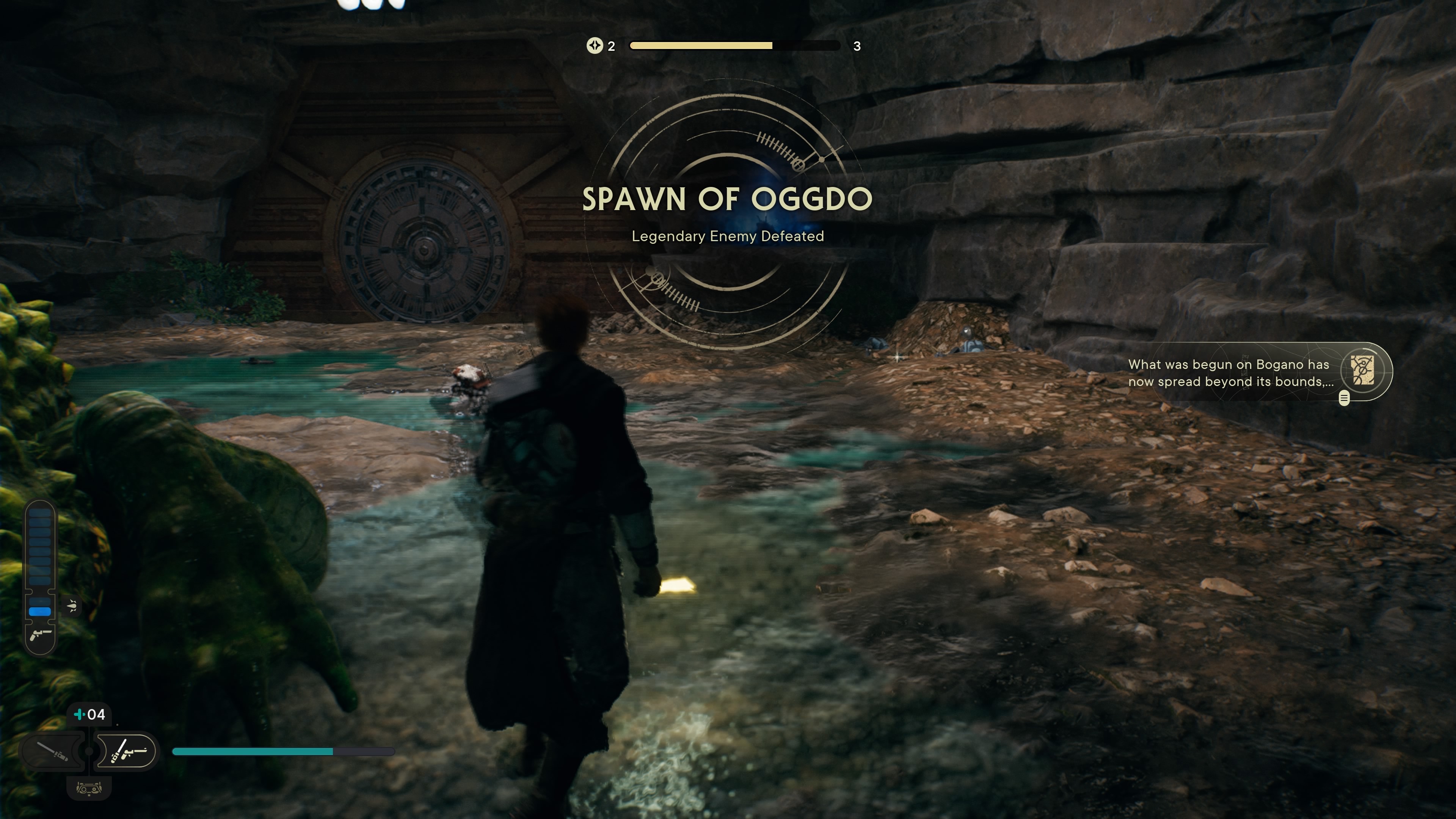Even without the blaster, this fight is more than doable. You’re going to have to risk some bigger hits if you mess up the parry/dodge timing, but dodging backward is key for avoiding most of Oggdo’s attacks. When in doubt, dodge Oggdo instead of parrying. Their attacks are swift and can dole out tons of damage (especially if it tries to eat you). Again, dodging backward will sidestep most of their attacks, including a standard video game boss fight body slam, and the mid-range tongue attack.