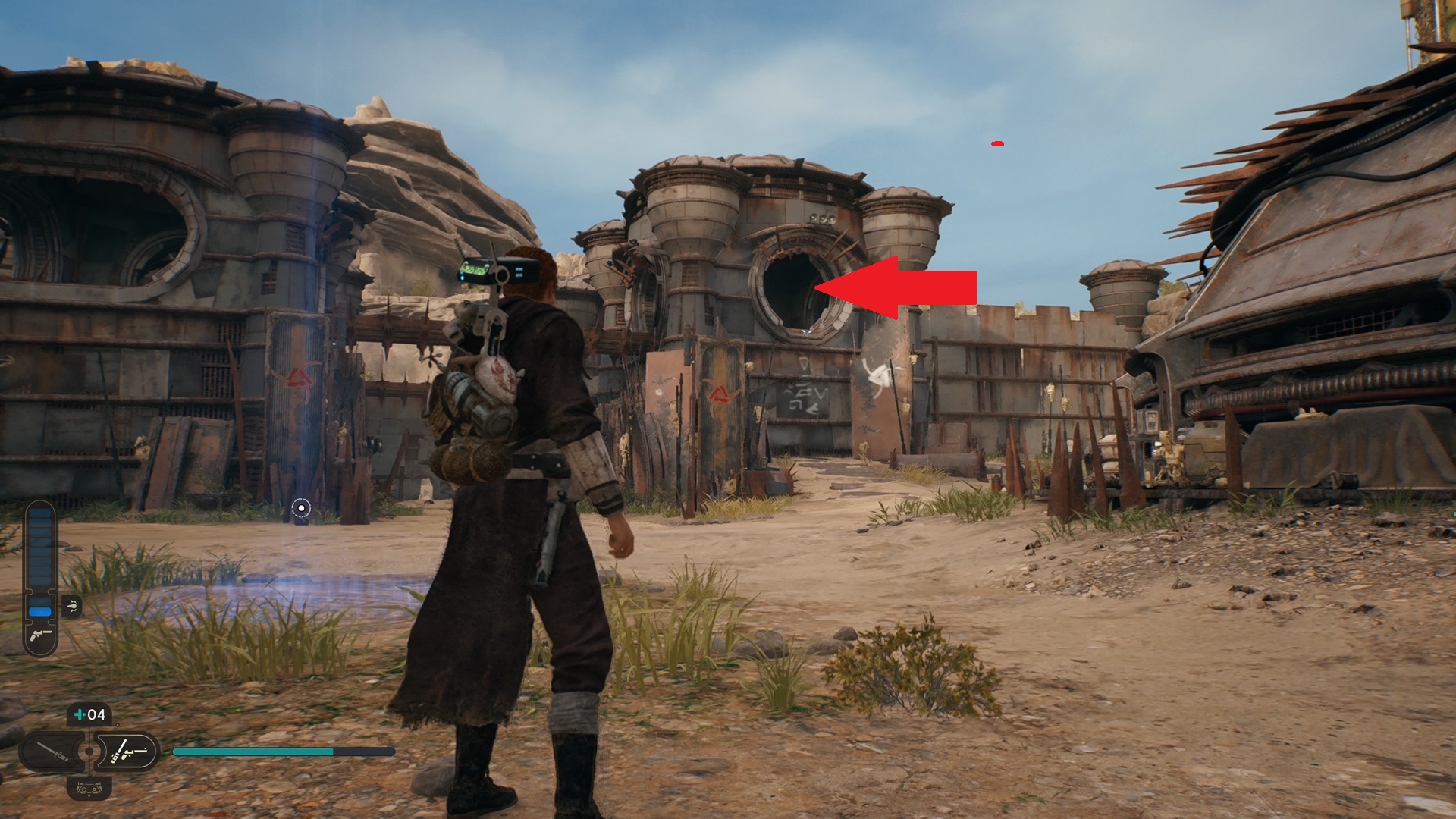 The easiest route into the fort is through the front gate, to the north. The fort is adorned with all sorts of spikes and (dead) Stormtrooper gear, so you can’t miss it. We have an easy route to the fort marked on the map above. When you get inside, make sure you head to the center and grab the meditation fast travel waypoint inside the fort.
