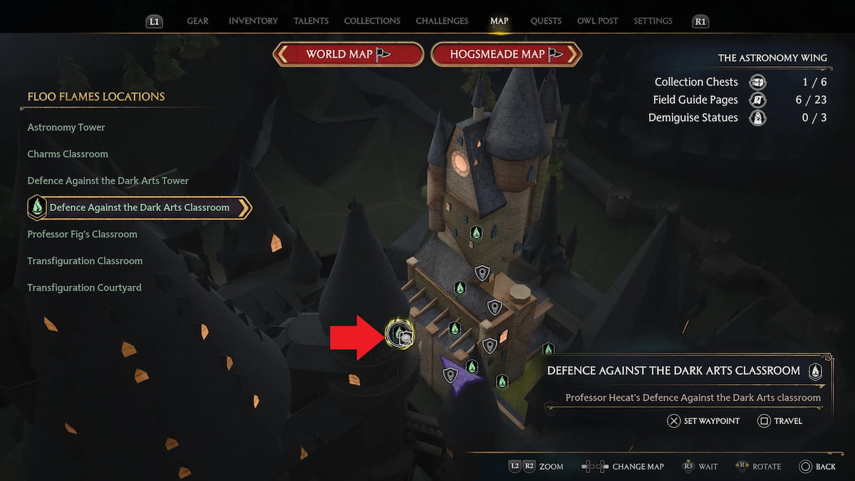 The Undercroft is disguised as a clock near the Defense Against the Dark Arts classroom. To get there, select the Defense Against the Dark Arts Classroom Floo Flame fast travel location before turning right and heading down the stairs. You’ll then make another right down, heading down a hall that looks like a dead end, before activating an ornate clock. Enter the clock by interacting with it, and you’ll be in the Undercroft.
