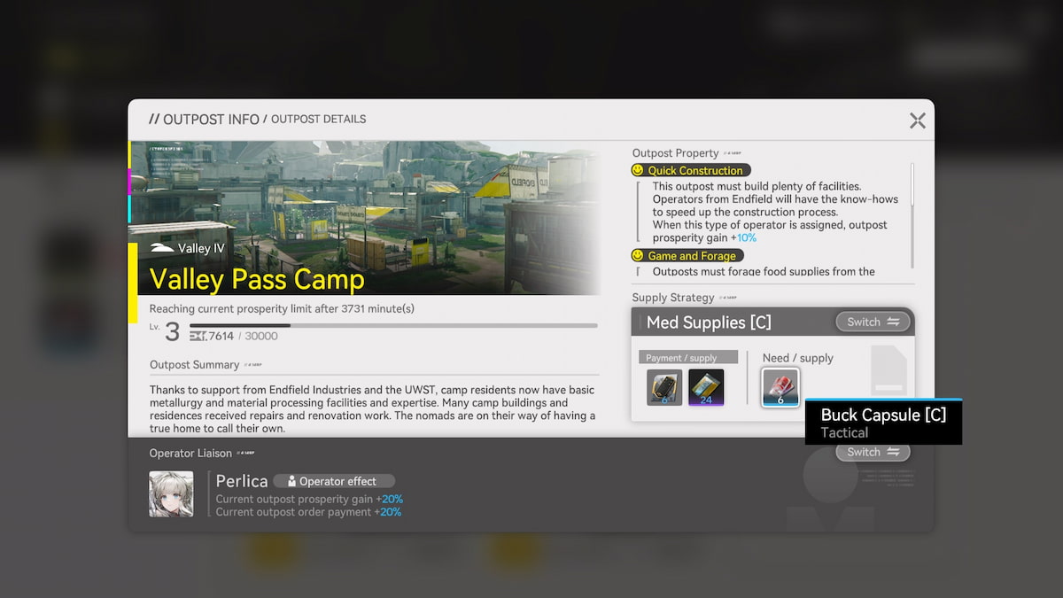 You’ll eventually set up an outpost in the Valley Pass region, which is the first region you’ll gain access to outposts in Arknights: Endfield. This outpost will begin life at Outpost Prosperity Level 1, and to level it up, you’ll need to mass produce and give the outpost its required materials.