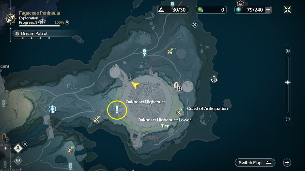 Begin by heading to the Fagaceae Peninsula, Oakheart Highcourt Resonance Beacon. Teleporting to it puts you directly in front of the correct entrance.
