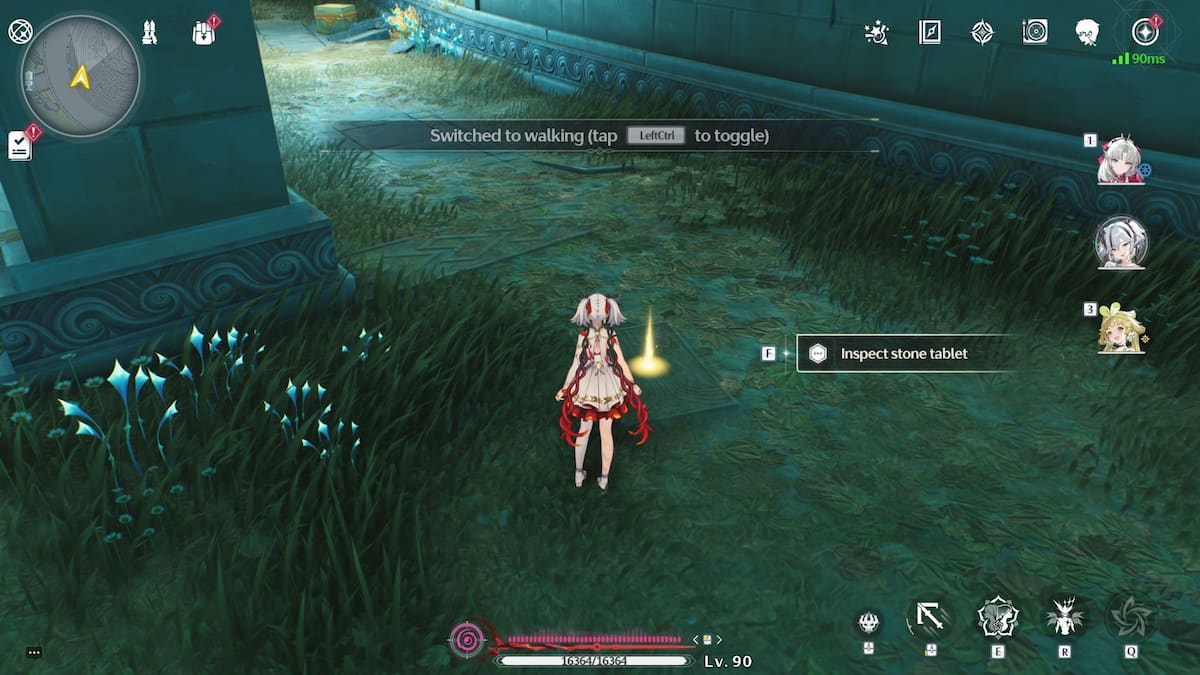 You want to continue to head toward the inner section of the maze for now, so make sure the path you take is doing just that. You will likely encounter several enemies on your way, so take care of them as they appear. Keep following the path until you reach the next stone tablet on the ground, then interact with it.
