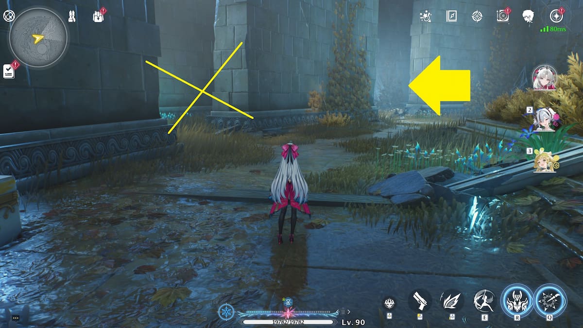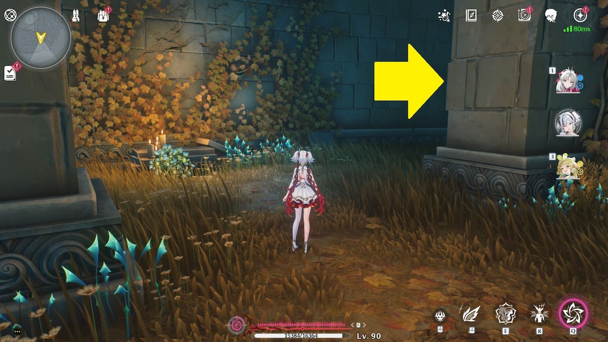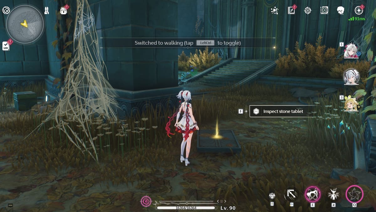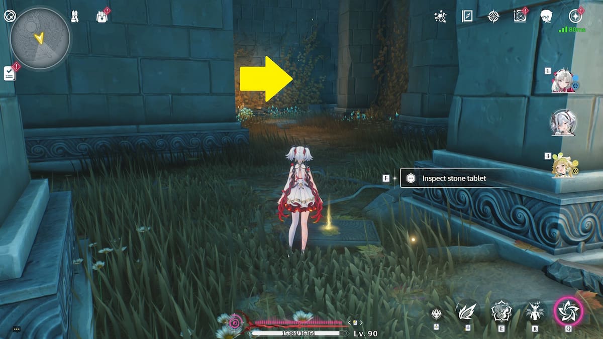 From here, follow the path all the way around until you see the next stone tablet you’ll be interacting with. You’ll know you’re in the right place if the area is lit with golden light.