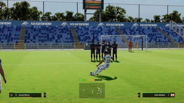 If you are looking to score from the right side of the pitch, you can do so by aiming at the last member of the wall (left to right) before performing a kick with 60 to 70% power and then holding down/left.