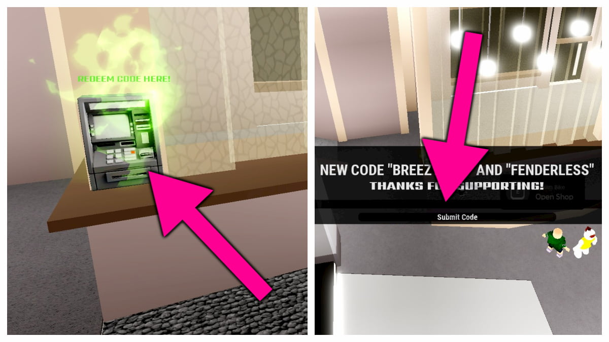 - Click on the Redeem Code Here ATM machine in the bike shop.