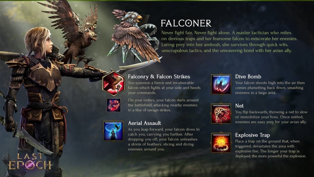 On Steam, developer Eleventh Hour Games detailed the upcoming Warlock and Falconer, adding to Last Epoch’s whopping 13 unique class masteries. These are, more specifically, not character classes as such, but sub-masteries belonging to specific classes. And while they technically slot into existing combat paradigms in a broad sense, they also open up interesting niches, such as the Falconer’s pet-focused ambusher approach.