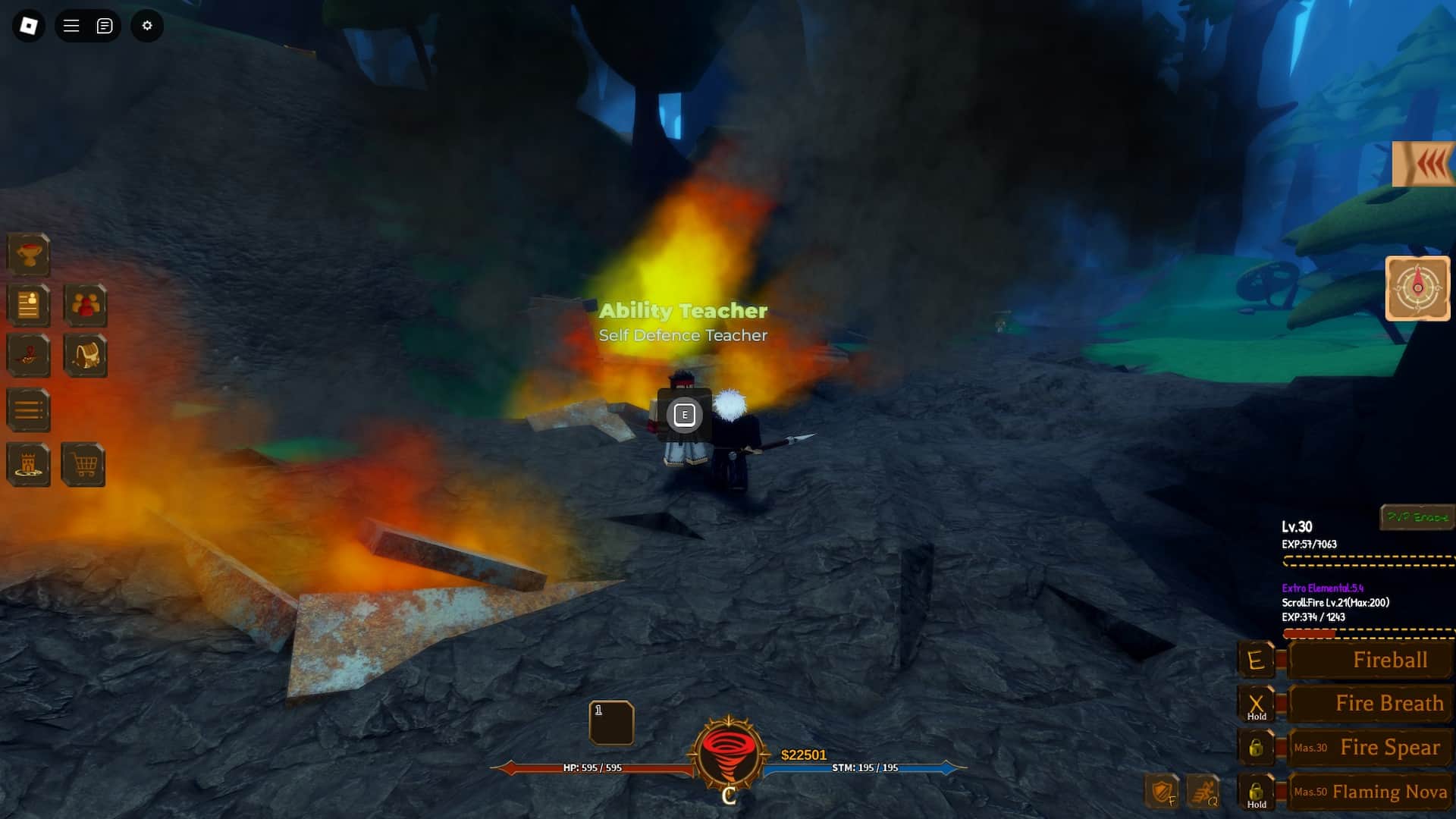 In Ninjitsu Master of Elements, the Self Defence Ability Teacher is an NPC that will help you unlock the Block move, and for that, you’ll need to find his suitcase. There is no need to interact with the guy, and you can just go past him and follow the charred road away from the crash site and past the LvL 20 Monk Skeleton area.