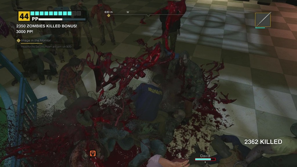 The mall itself is a sandbox. With rare restrictions, you can roam and explore it as much as you want. The whole town has shown up, so it’s packed wall-to-wall with walking carcasses, but with society temporarily suspended, you can help yourself to whatever you want to wield as a weapon.