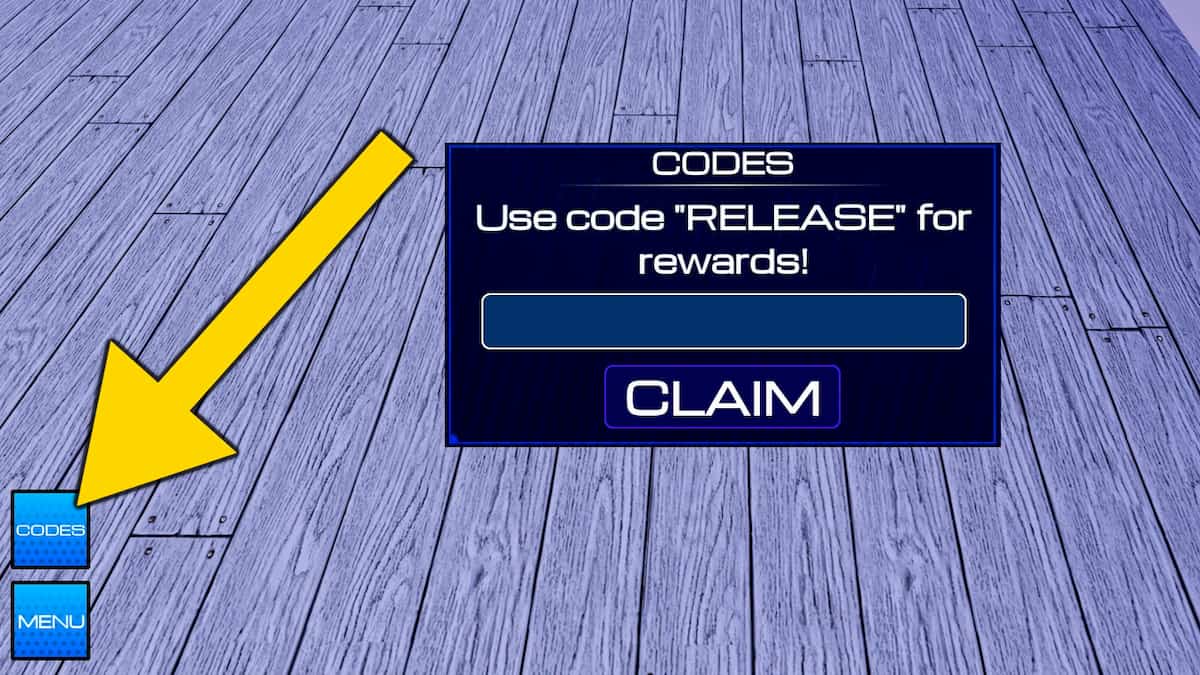 - Press the Codes button in the bottom-left corner (while in the Lobby).