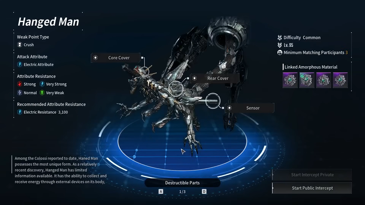 It’s recommended that you have at least 3,100 Electric Resistance to mitigate some of the damage from the Hanged Man on normal difficulty.
