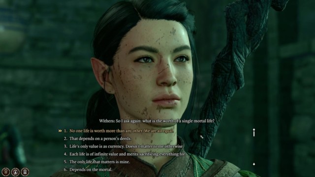 During Act 1 of Baldur’s Gate 3, you may find yourself speaking to an undead man named Withers. Withers challenges you to answer a simple question: “What is the worth of a single mortal life?” Here’s what can happen, depending on how you answer his strange query.