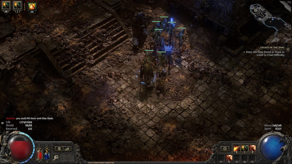 As for what to do with them, if you didn’t find them within the Apex of Filth, head to that location and kill enemies for them to eventually drop. Once you do have them, you’re looking for a cauldron with a Cauldron Keeper standing behind it within the Apex of Filth. This zone is massive and is also quite dangerous, so it may take you an extensive amount of time to find the cauldron and the keeper. Due to maps in Path of Exile being randomized, I cannot give you the exact location. What I can say is that no matter which map variant you get, you’ll find a flight of alter-like stairs just before reaching the Cauldron.